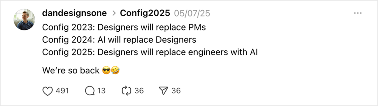 Last year felt like a downer. Who needs designers if Figma can just build it for you? But the vibe has shifted this year. I dare say — we’re in a golden age. The tools are evolving and somewhat curde. But as I learned from Raylene Yung’s talk, best orgs don’t just settle for what they have—they build better tools for makers.