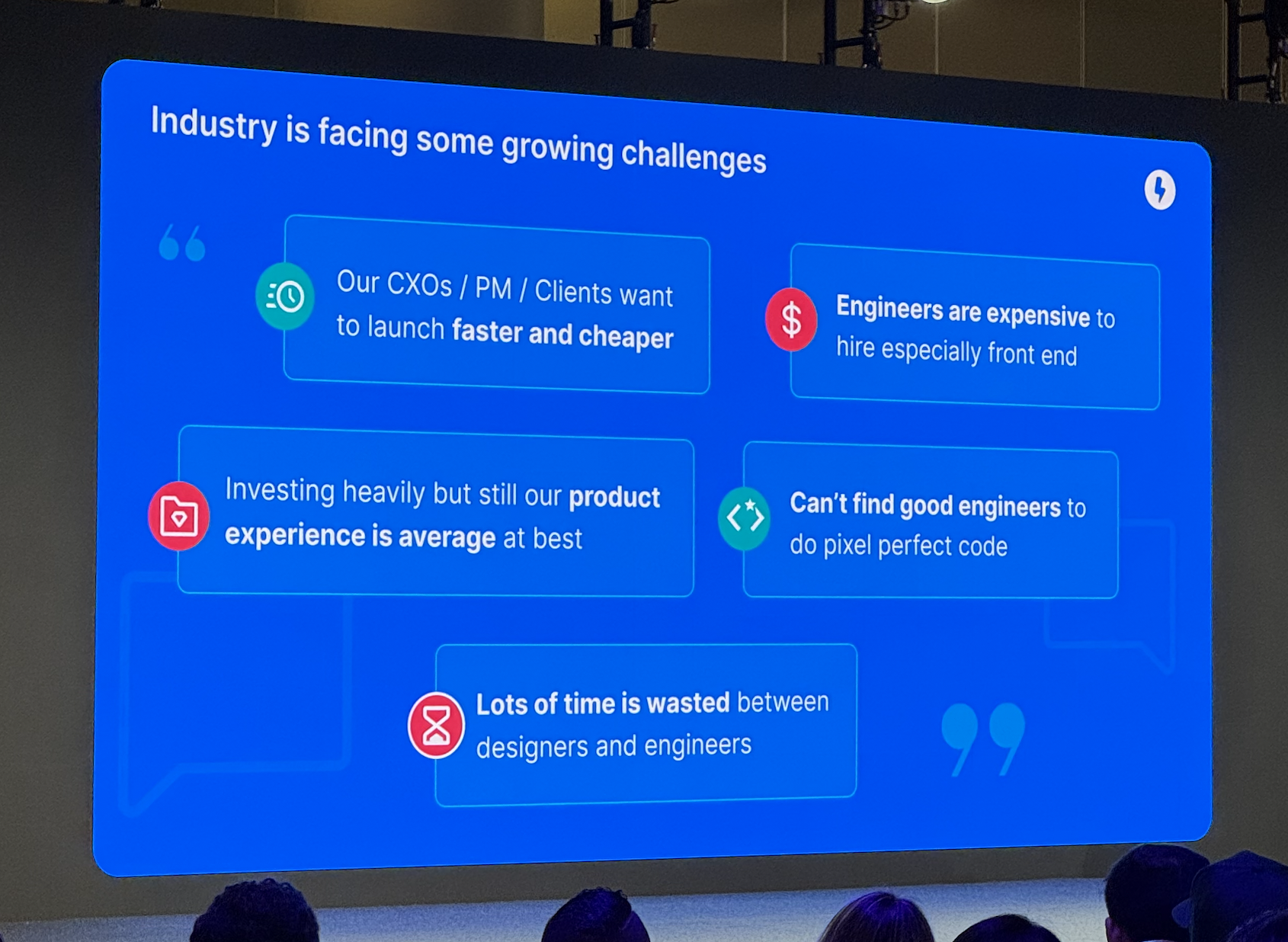 - Become a founder—Parteek Saran went from designer to startup founder, encouraging others to make the leap too. The tools are here. And more importantly—as deisgners, we have the mindset already aka the through line of the talk was “You’re already doing it!”